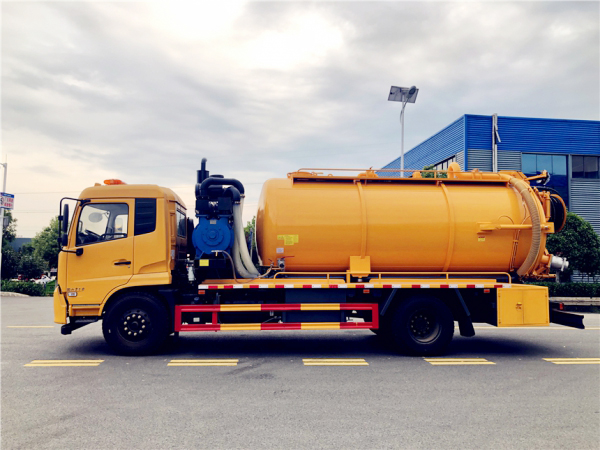吸污部分:9方污罐,罐體8mmQ235優質碳鋼,配濰柴375(420)副發動機帶淄博SK-30水循環泵,還可以選配羅茨泵。10米吸污管一根,進氣管加過濾網,防溢閥加高,后蓋卡扣鎖緊,前視污亮管,后尾部加裝3個力拓牌**mm的球閥吸污口,600mm排污口液壓開啟,罐體帶舉升功能。
